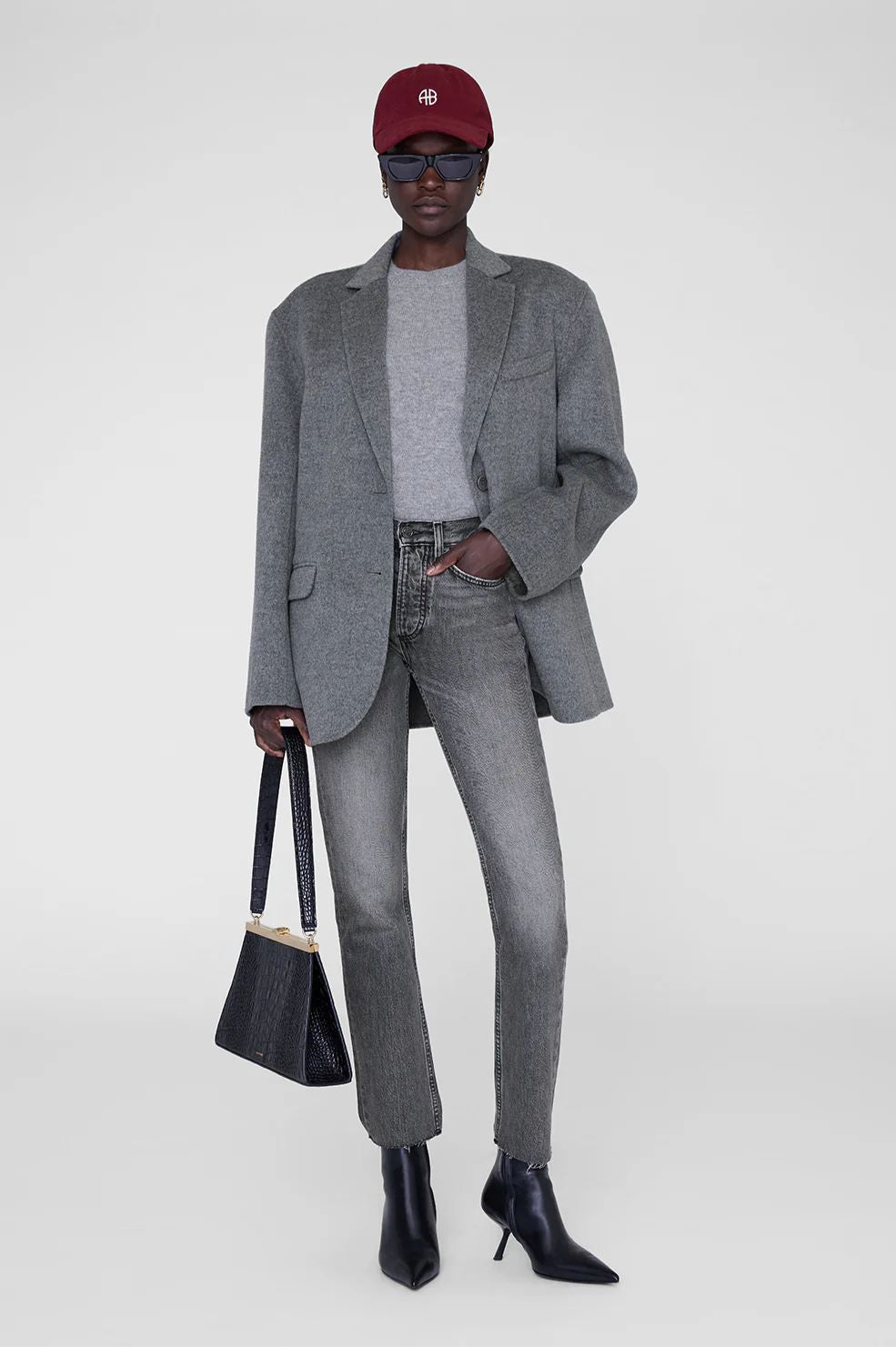 The Anine Bing Jeremy Baseball Cap is an adjustable cotton-twill baseball hat in black. It features an adjustable back strap for a close, comfortable fit. An embroidered AB logo in contrast white stitching at the center front serves as a subtle touch of elevated branding.