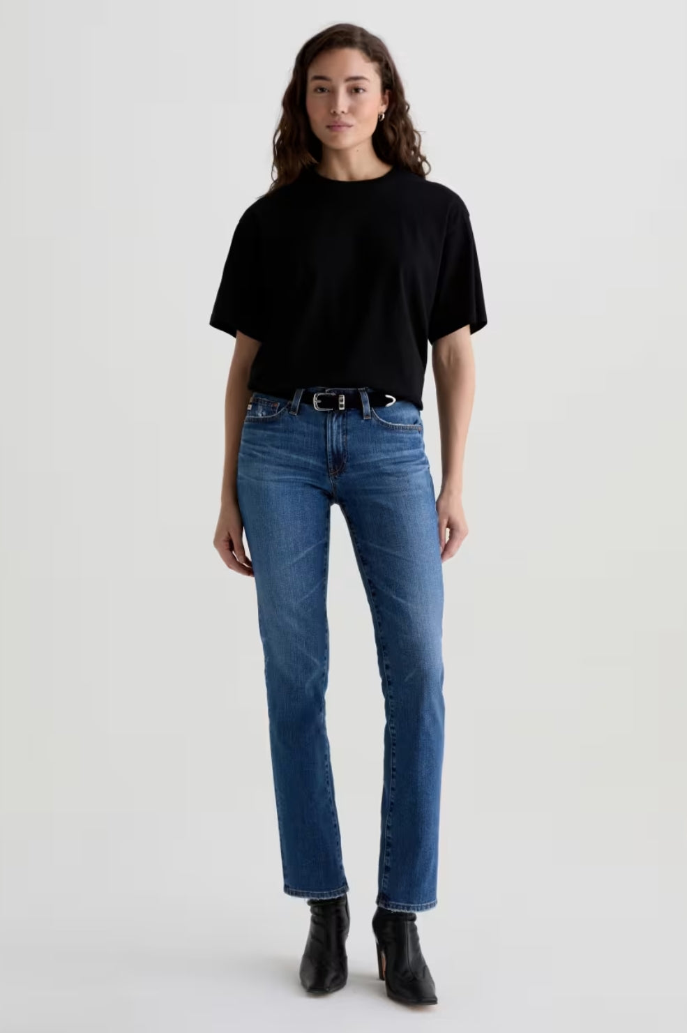The Sandra is a low-rise straight jean. Crafted from Lead Denim, 11 Oz. for superior comfort and style. Designed with classic five-pocket styling and premium construction for everyday wear. Shown here in 15 Years Prague, AG-ed™ to emulate 15 years of wear—offering rich character and an authentically broken-in feel.