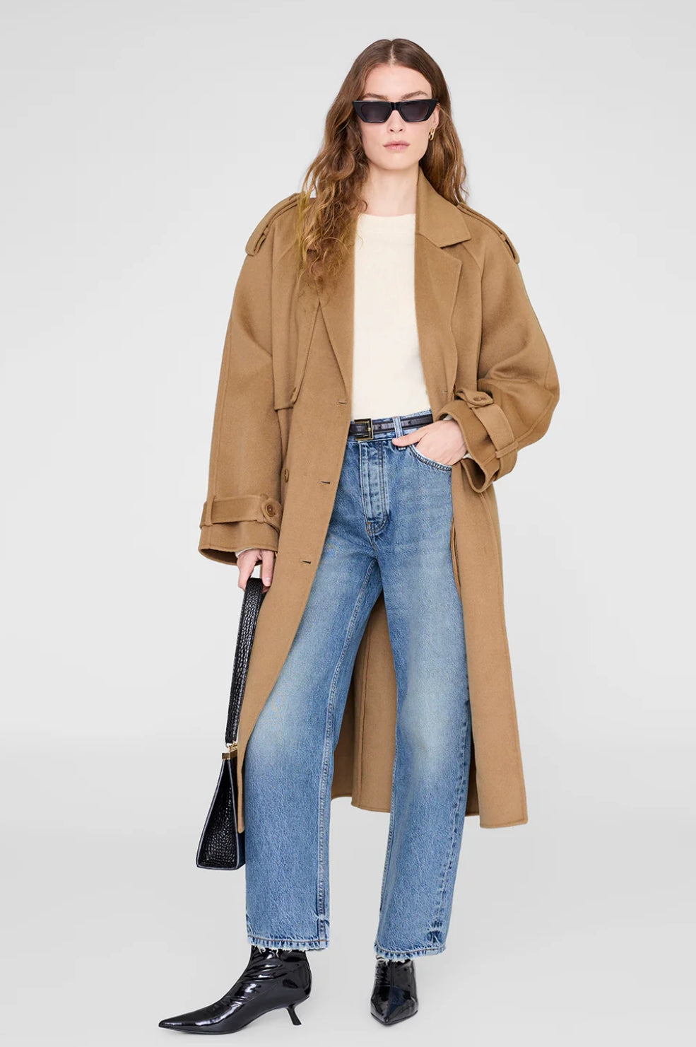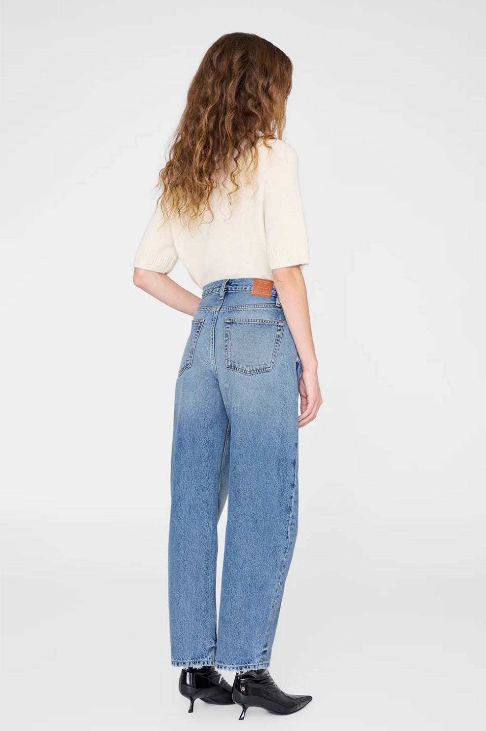 - Regenerative cotton denim- Barrel silhouette- Mid rise- Straight leg- Ankle-length inseam- Clean-edge hem- Non-stretch denim